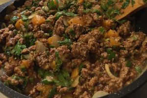 לטגן בצל במעט שמן זית להוסיף בשר טחון