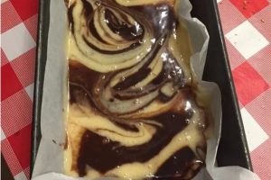 יוצקים את העיסה לשתי תבניות, מרופדות בנייר אפיה,עד 3/4 גובה .